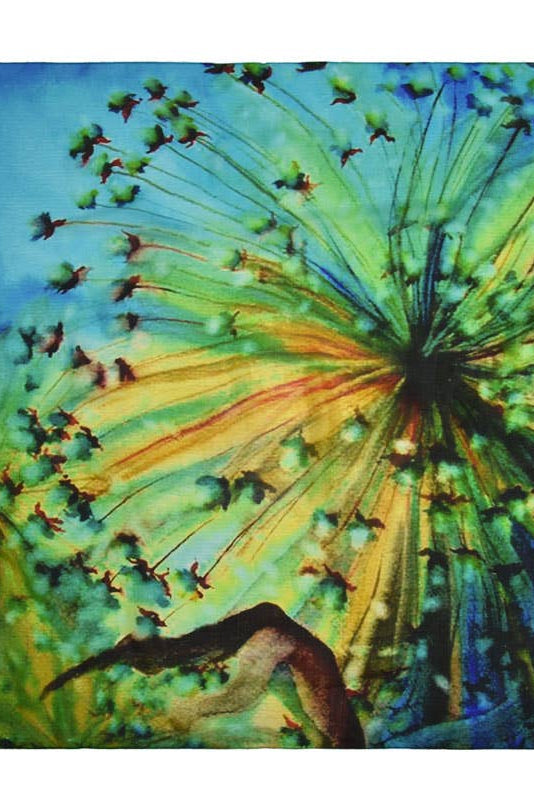 Black Painted Tropical Floral Lydia Wood Handle Jute Tote