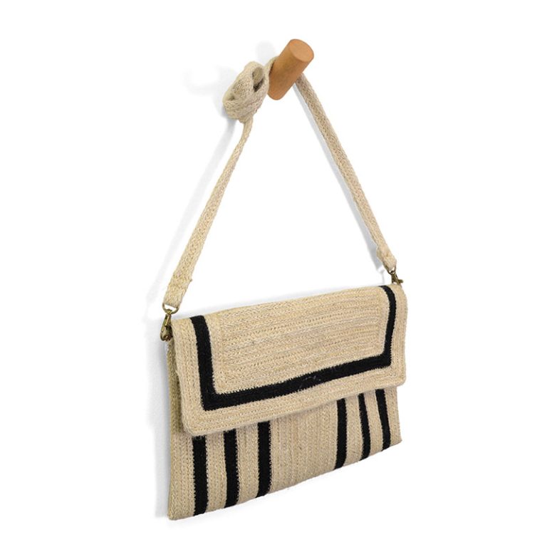 Black Geo Striped Nellie Jute Fiber Crossbody Bag
