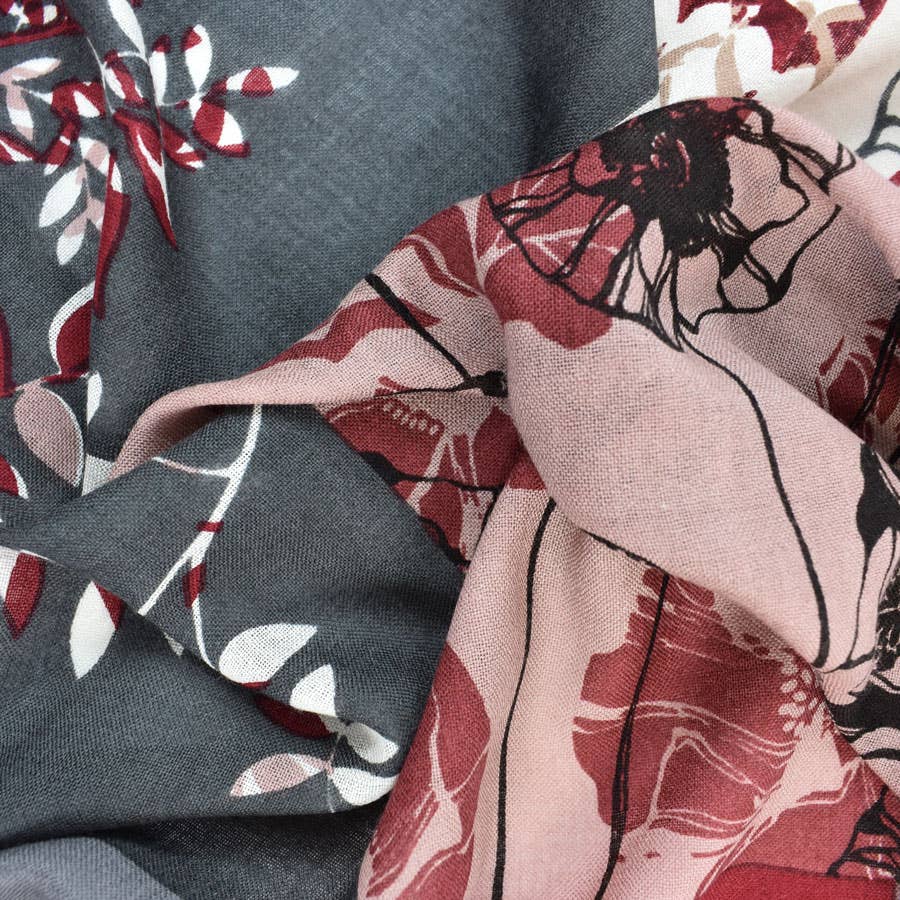 Herald in fall this season with the ultra-soft Kamila scarf. Reminiscent of pressed flowers, this mixed geo and floral design is digitally printed on a mercerized wool for a smooth, silky hand feel.