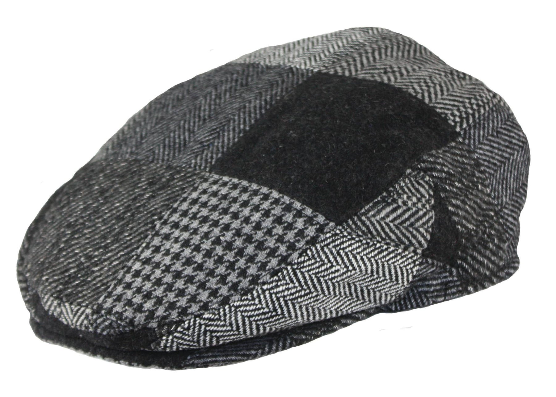 Unisex Ivy Cap hat. flat cap- Patchwork - Wool, snap front, adjustable strap in back, cotton lining.