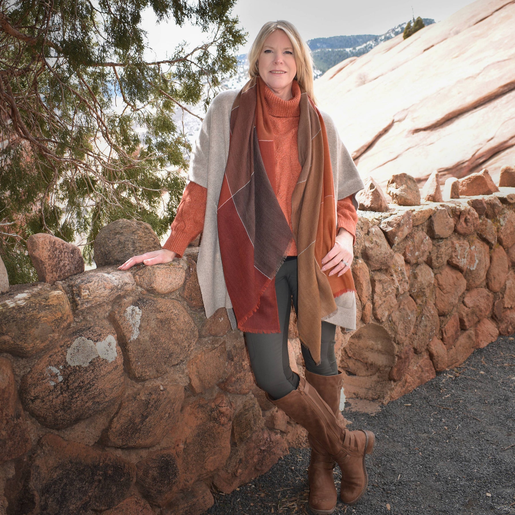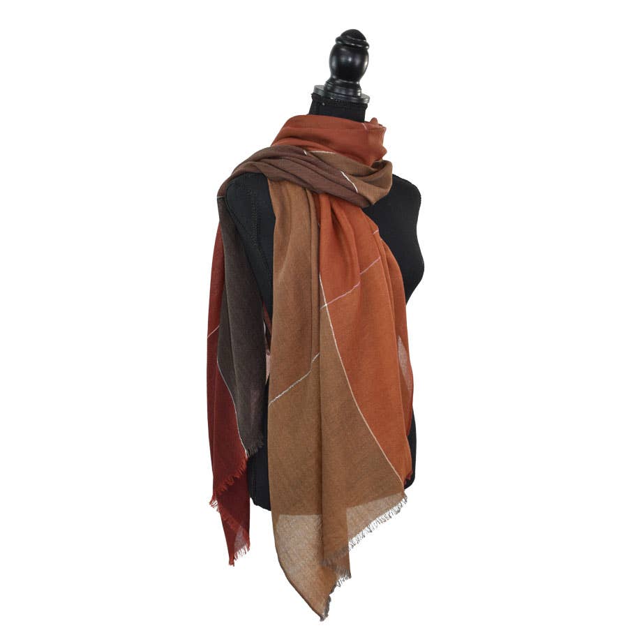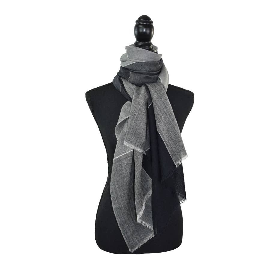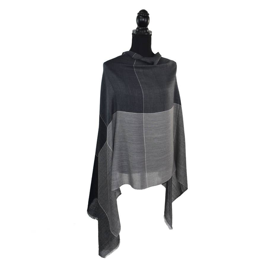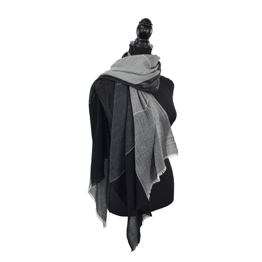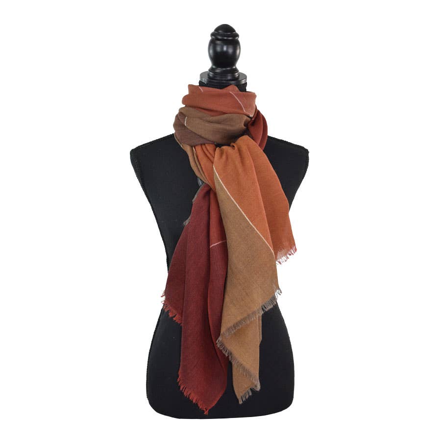 Wrap yourself in this soft wool scarf featuring 12 color block panels that create a stunning Ombre of hues when draped. Whether layered over a coat or paired with a sweater, this scarf effortlessly elevates your style while keeping you cozy in colder weather. Revel in its unique design and embrace the timeless charm of this must-have accessory.