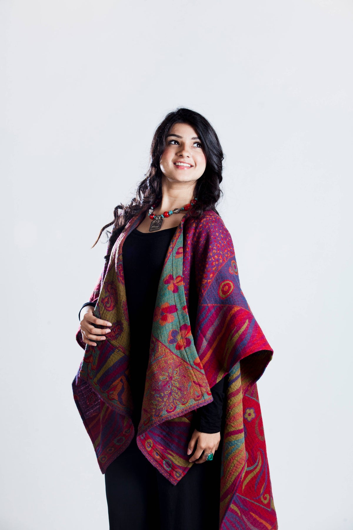 This Poncho is a Perfect compliment for any body type ,a mix of patterns & an array of colors to lift your mood & add colors to your wardrobe, the possibilities are endless.
