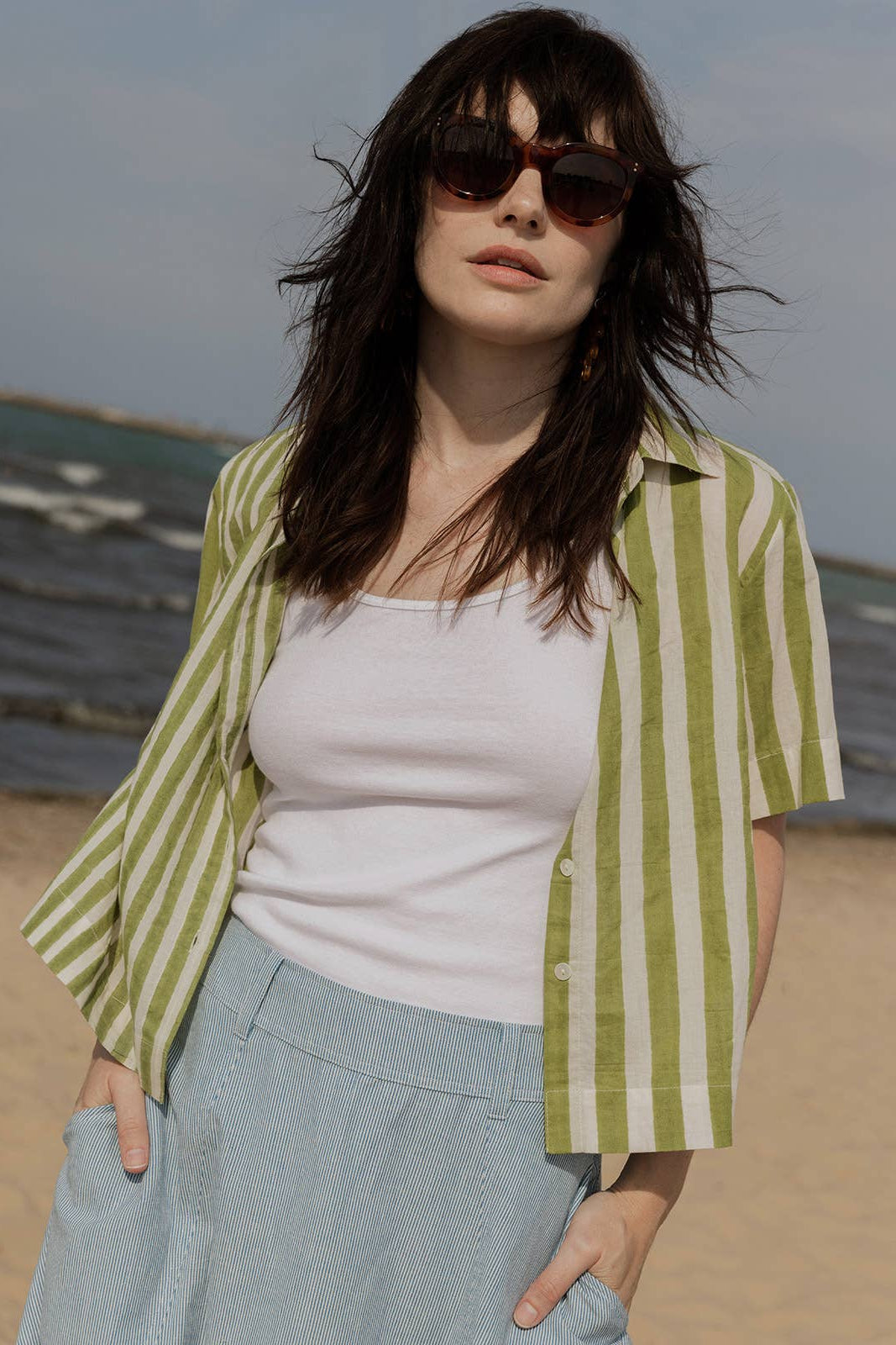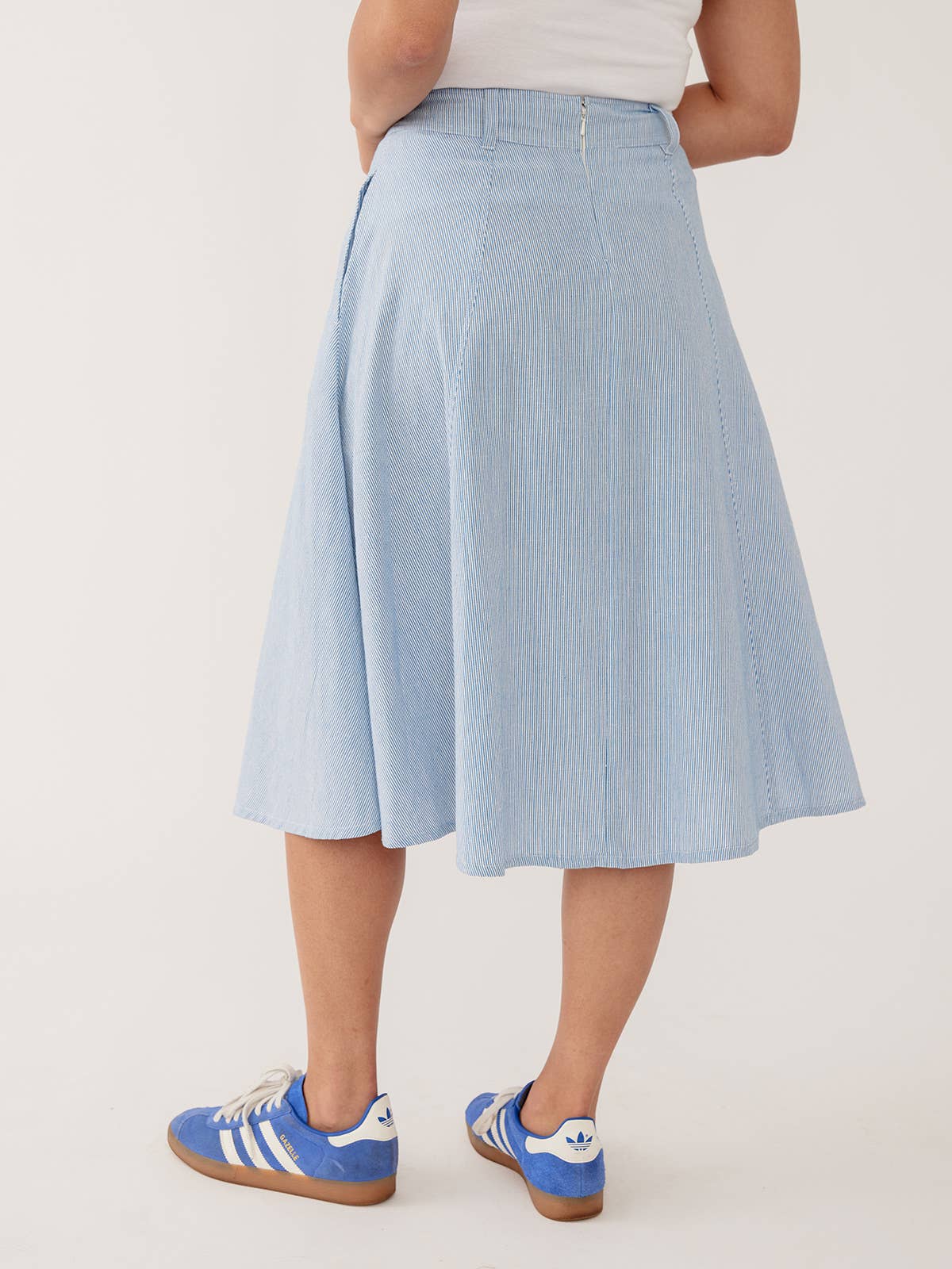 80% Cotton 20% Linen Summer-weight linen blend. Small batch yarn-dyed textile. Hidden pockets. Essential A-line silhouette Below the knee length. Length is 29" at side seam. Made fair trade in India by one of our longstanding production partners