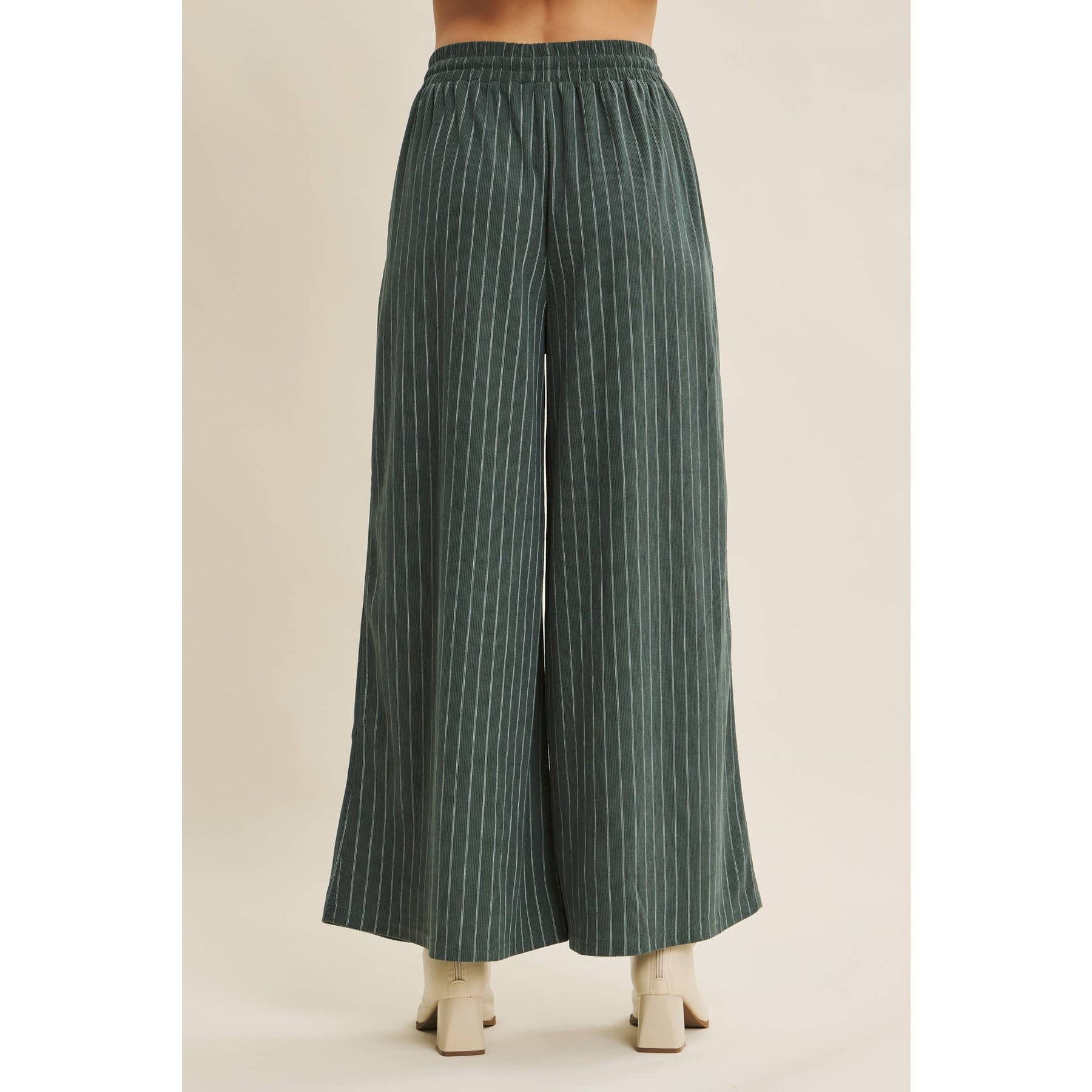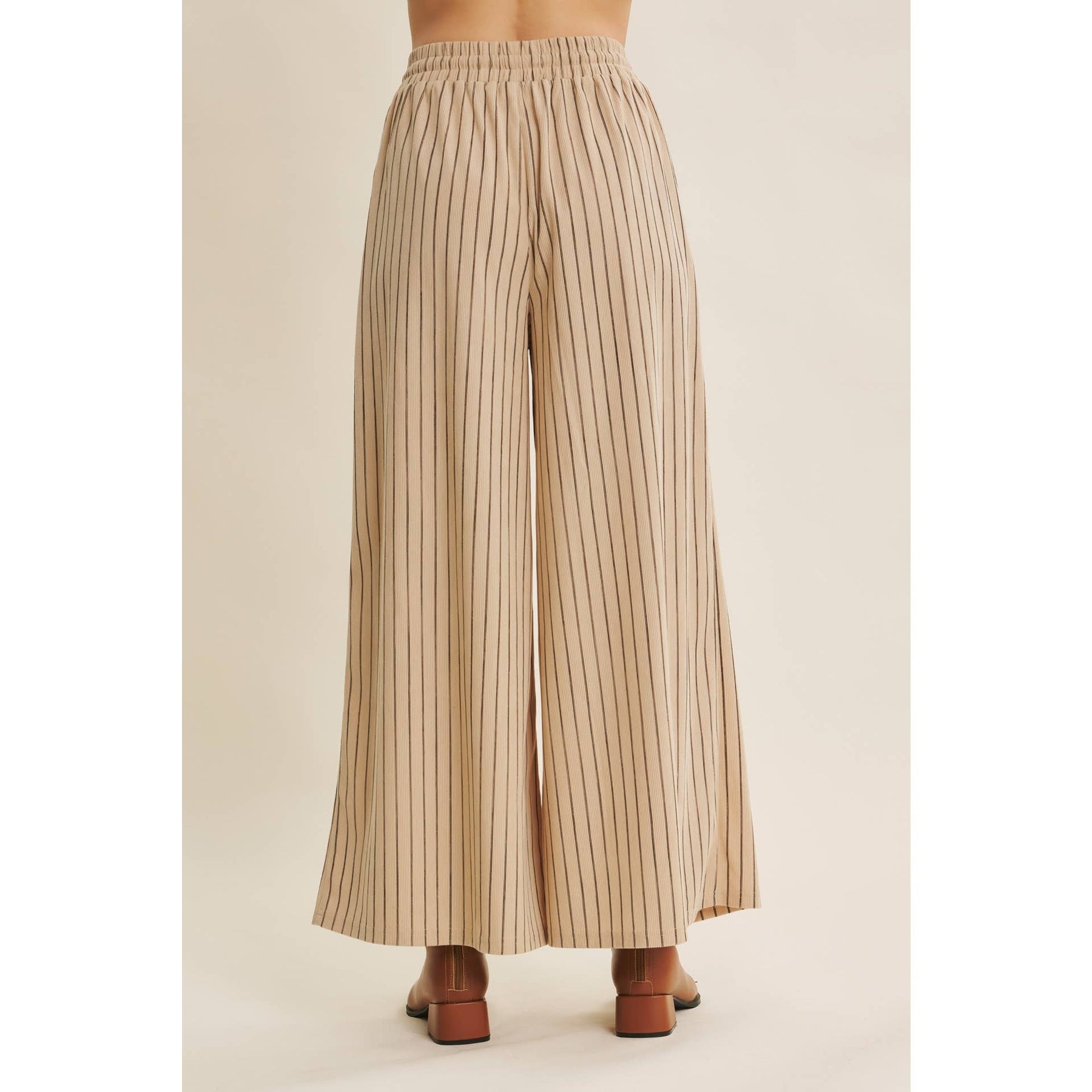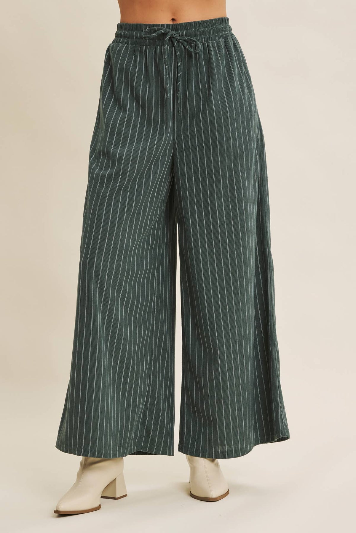 Effortless and endlessly wearable—these striped corduroy pants are your cozy-chic answer to transitional weather dressing. Designed in a soft, textured fabric with clean vertical stripes, they lend instant polish while feeling as comfortable as loungewear. The wide-leg silhouette flows with ease, and a stretchy waistband with drawstrings ensures an easy, flexible fit.
