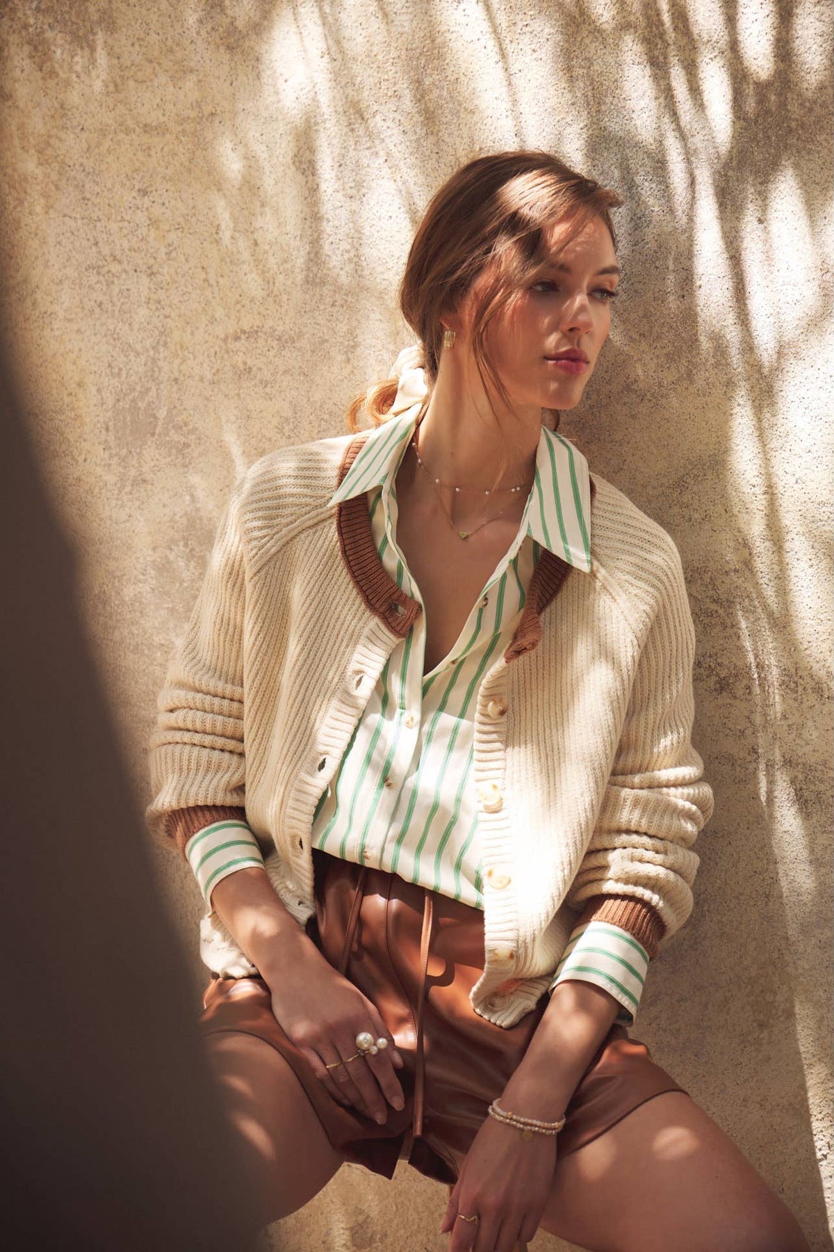 Meet your go-to layer for everything from crisp morning walks to casual office looks and elegant holiday gatherings. This bestselling cardigan is beloved for its cozy yet elevated feel. Crafted in a soft cotton blend, the round neckline and contrast trim details add thoughtful dimension to a timeless silhouette. It pairs beautifully with a satin midi skirt for a romantic touch or vegan leather shorts and a striped shirt for a modern layered look. From fall strolls to end-of-year parties, this cardigan offers effortless warmth and polish. A must-have layering piece.