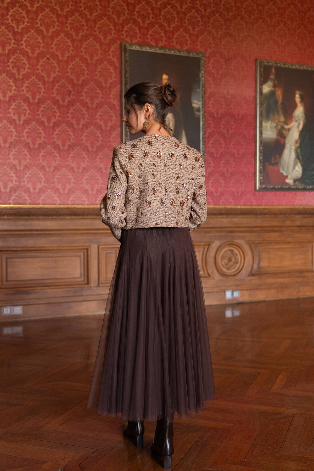 Short sequin tweed jacket Fit: Fitted and structured, this short-cut jacket elegantly highlights the waist while maintaining a contemporary look.