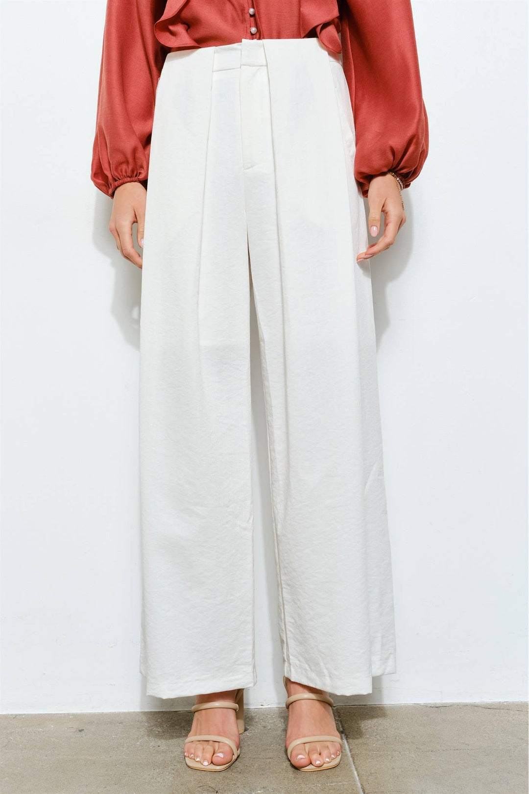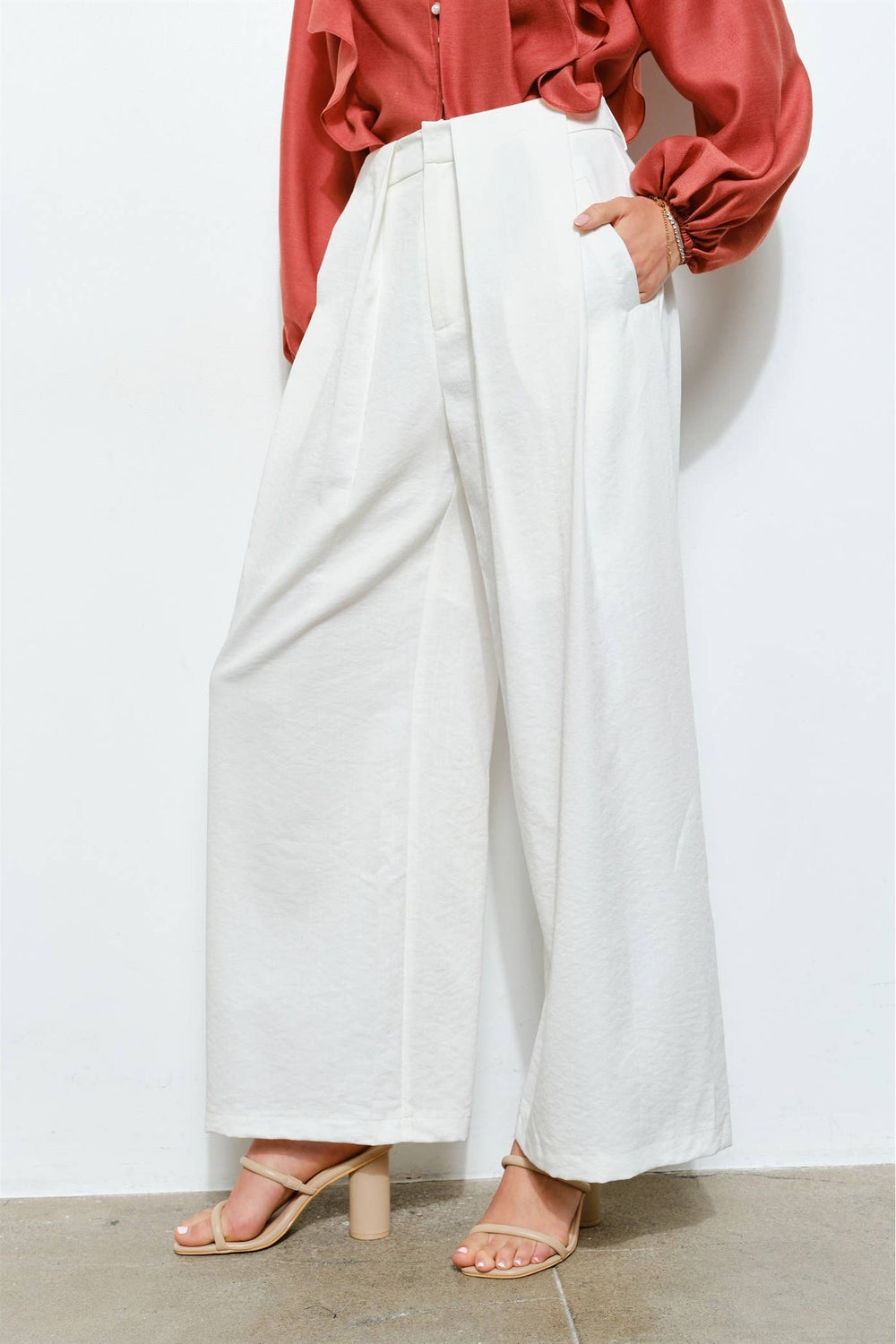 Soft Rayon Pleated Wide-Leg Pants with Pockets