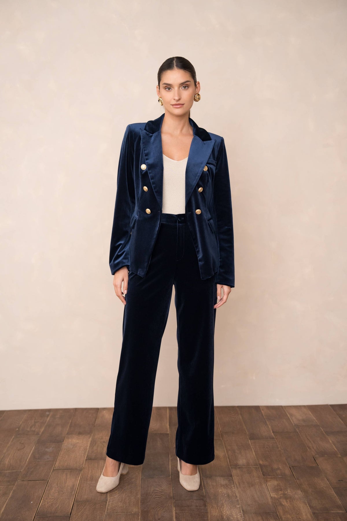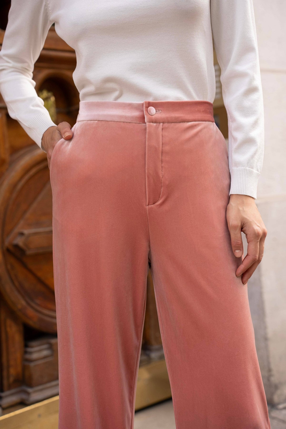 Stunning velvet trousers: straight cut - side pockets - front button closure. You will be ready for any holiday event, gathering or special evening.