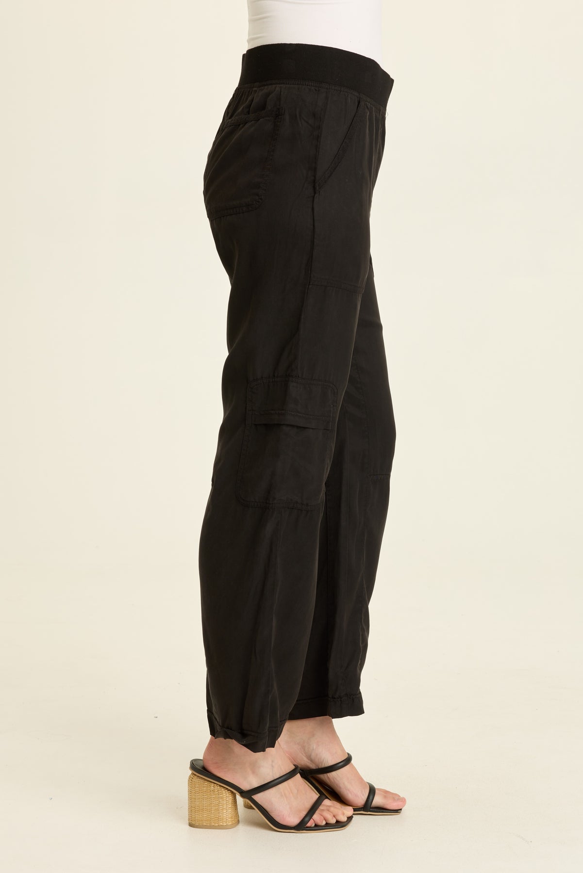 A streamlined silhouette, the Taran Pant has darts at the knee, welt cargo pockets, a pull-on waist and front and back pockets.