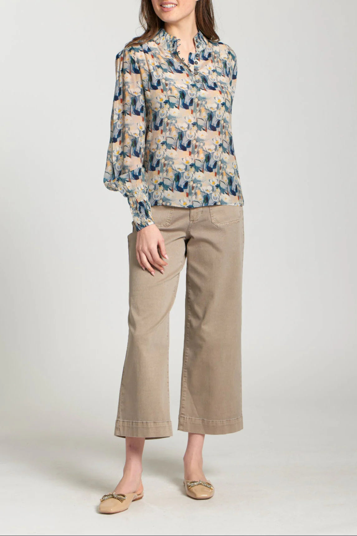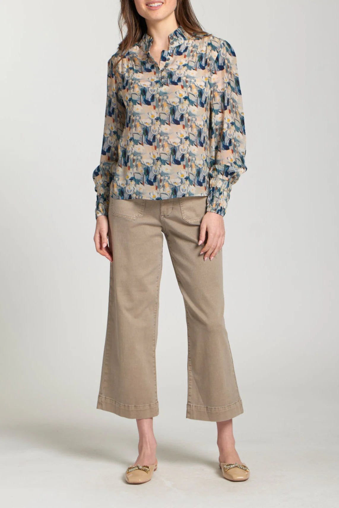 This stunner's got all the feathery feel with a statement Print, plus on-trend puffed sleeves and rushing that'll cinch you in for a dreamy silhouette. Made from a cloud-soft blend, it's a comfort that turns heads. This top is the perfect companion for an eye-catching look that's comfy and oh-so-trendy!