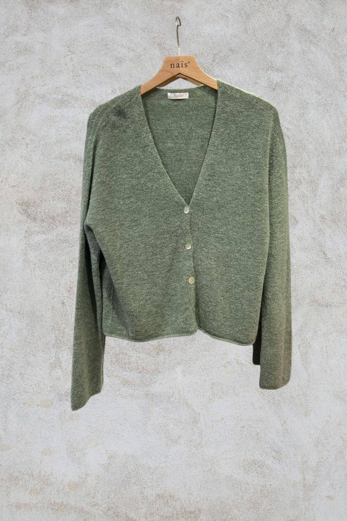 Short buttoned V-neck Cardigan in Alpaca and Wool