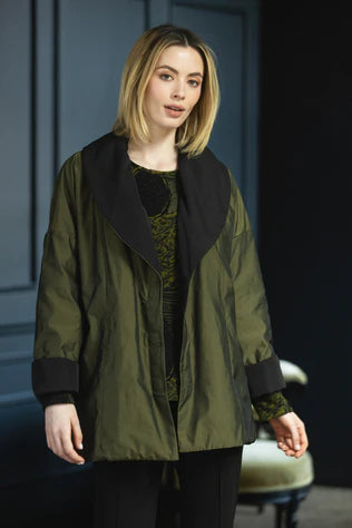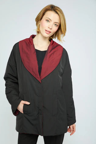 Lightly filled for seasonal comfort. Flip your collar and cuffs for sophisticated contrast. Two coats in one.